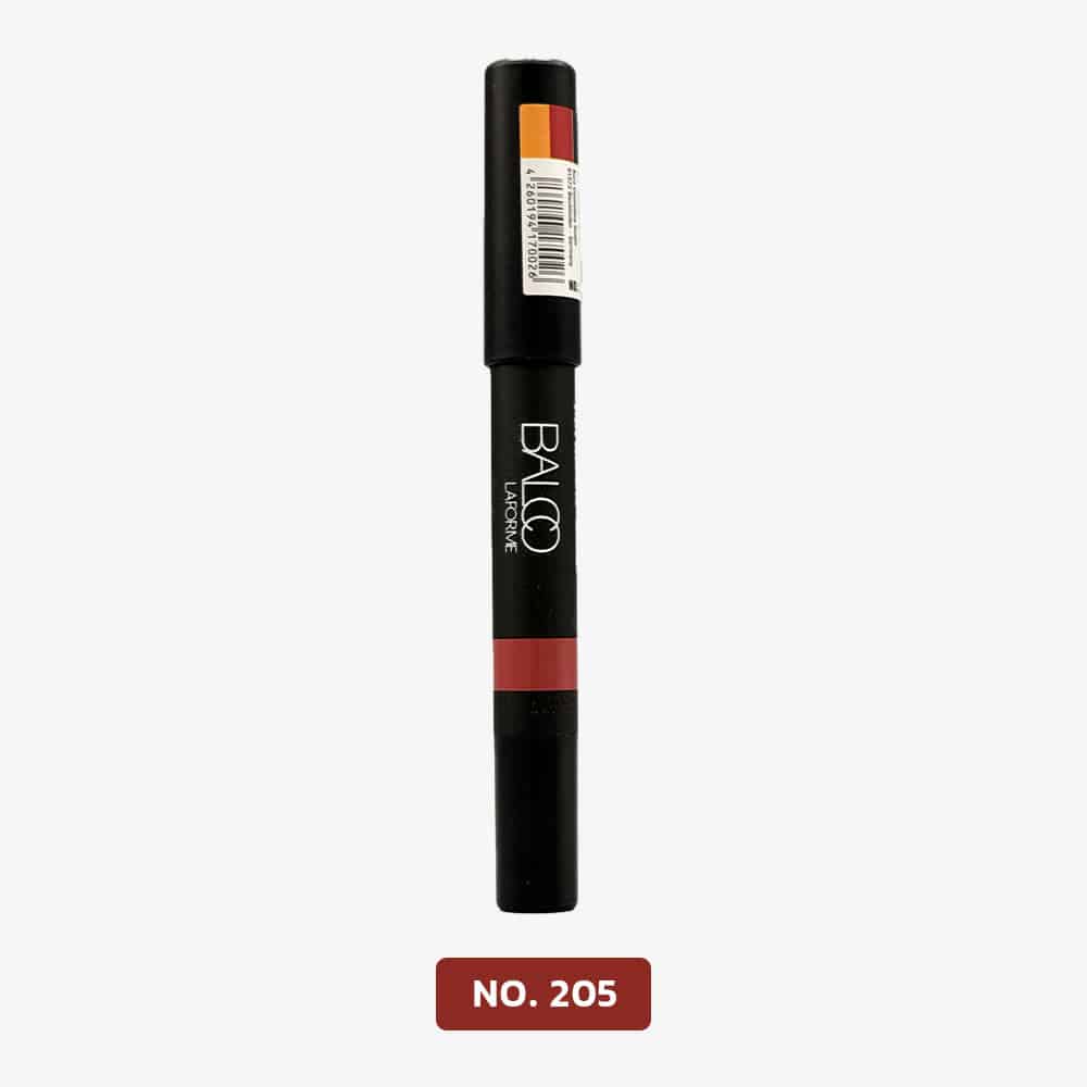 رژلب جامد بالکو با نوک تیز و بافت کرمی، بهعنوان خط لب و رژلب همزمان استفاده میشود و خطوط دقیق و پررنگی ایجاد میکند – ایدهآل برای آرایش سریع.