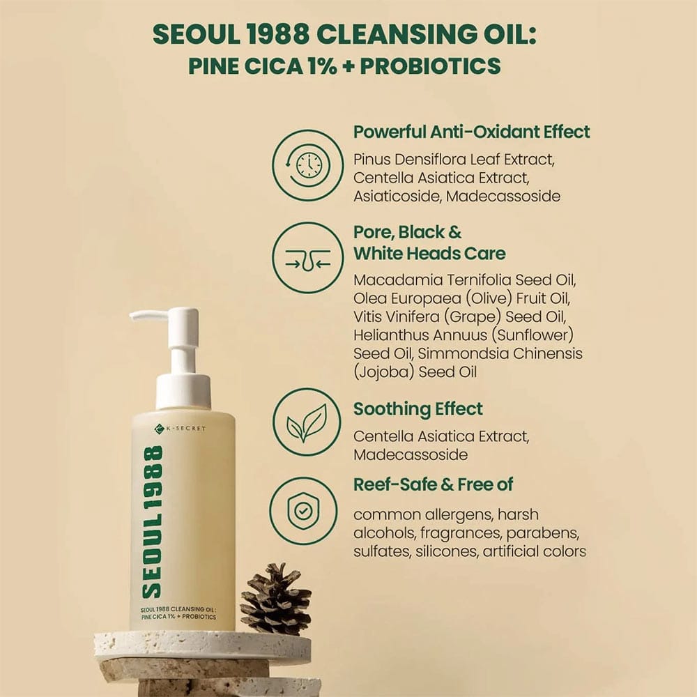آیا به دنبال محصولی هستید که آرایش و ناخالصیها را بهآرامی پاک کرده و پوست حساس را تسکین دهد؟ شوینده روغنی کی سکرت (KSECRET Seoul 1988 Cleansing Oil Pine Cica 1% + Probiotics)، محصول برند کرهای کی سکرت، با فرمول وگان حاوی ۱٪ کمپلکس پاین سیکا و پروبیوتیکها، آرایش ضدآب، سبوم اضافی، و آلودگیها را بهطور کامل پاک میکند. این روغن پاککننده کی سکرت با ۵ روغن گیاهی مغذی و بافت سبک، پوست را آبرسانی کرده و بدون انسداد منافذ، حس تازگی به آن میبخشد. فاقد عطر، پارابن، الکل، و تست حیوانی، این محصول برای انواع پوست، بهویژه حساس و مستعد آکنه، مناسب است. با شوینده روغنی کی سکرت، پوستی تمیز، نرم، و متعادل را تجربه کنید.