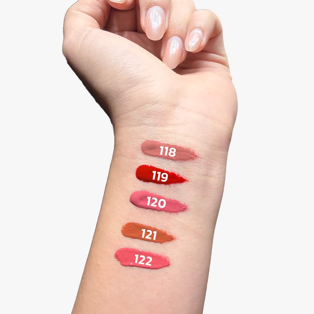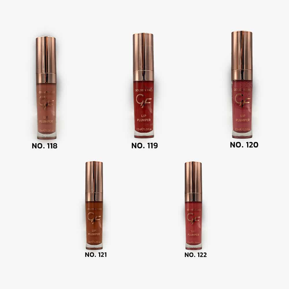 لیپ تینگت پلامپر گلدن فیس در ۵ رنگ (۱۱۸ تا ۱۲۲): نود ملایم (۱۱۸-۱۱۹)، صورتی طبیعی (۱۲۰)، هلویی گرم (۱۲۱) و صورتی پررنگ (۱۲۲) – رنگهایی که با پوستهای ایرانی عالی ست میشوند.