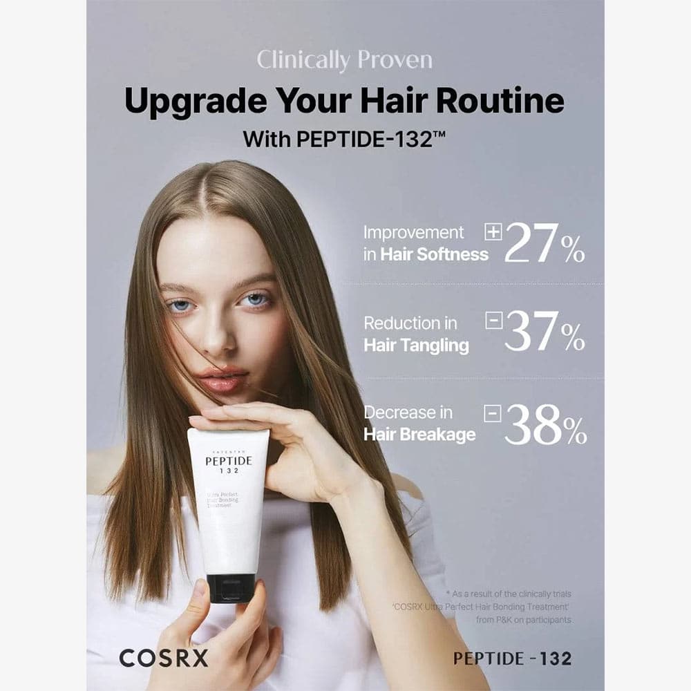 ماسک ترمیمکننده کوزارکس حاوی کمپلکس ۱۳۲ پپتاید است که پیوندهای هیدروژنی ساقه مو را تقویت کرده و آسیبهای ناشی از رنگ، حرارت، یا UV را ترمیم میکند. این ترکیبات، موها را ضخیمتر، بلندتر، و مقاومتر در برابر شکستن میکنند.