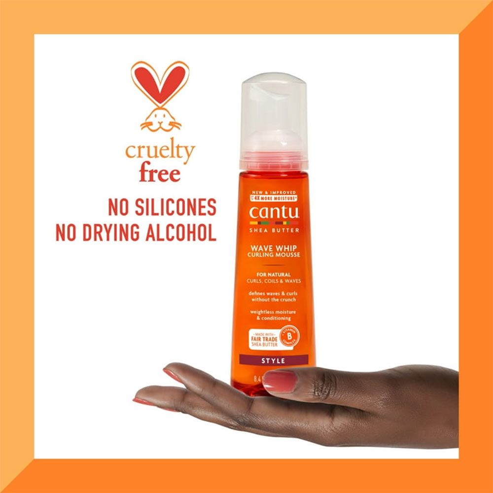 موس شی باتر Cantu با بافت کفمانند سبک، بدون ایجاد حس چربی یا چسبندگی روی موها پخش میشود. این محصول تا ۲۴ ساعت حالت فرها را حفظ کرده و از وز شدن مو در طول روز جلوگیری میکند.