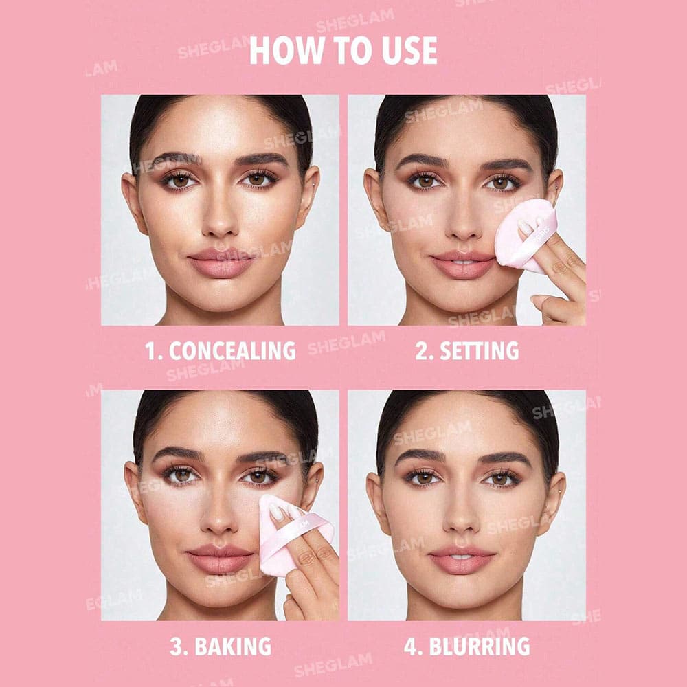 پد آرایشی شیگلم با بافتی نرم و لطیف، بهصورت سهتایی عرضه شده و برای اعمال یکنواخت پودر فیکس یا پنکیک طراحی شده است. این پدها با دو طرف (پفکی برای پخش و منسجم برای تثبیت)، استفاده آسان و دقیق را فراهم کرده و از هدر رفتن محصول جلوگیری میکنند.